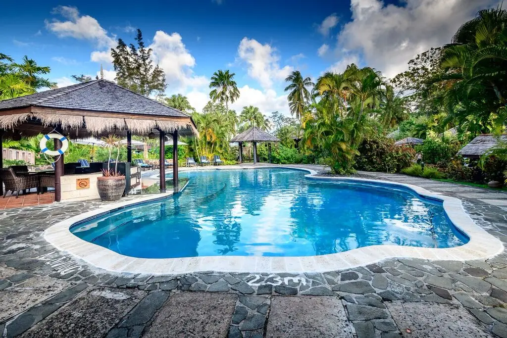 L. Charles Airport. Warm cottages offer patios, flat-screen TVs and free Wi-Fi, plus minibars, and tea and coffeemakers. Upgraded cottages have sea views and living rooms. Freebies include meals, sailing lessons and snorkeling, plus loaner paddle boards and kayaks. There are open-air, polished restaurants, plus a BBQ eatery, a laid-back lounge, and a bar next to an outdoor pool. Other amenities consist of a spa and a game room, along with deep-sea fishing (fee). Minimum-stay rules apply. Kids age 8 and over are welcome.